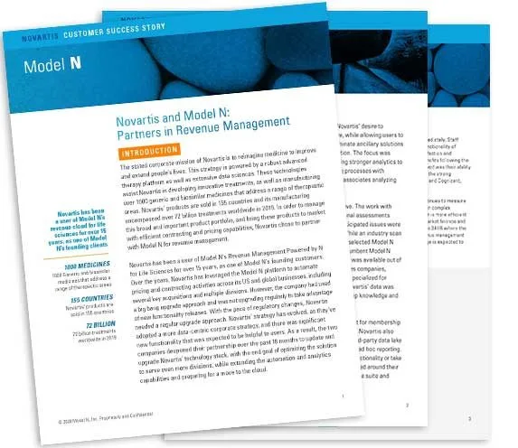 To bring their extensive portfolio to market with efficient contracting and pricing capabilities, Novartis has partnered with Model N for nearly two decades. Using Model N, Novartis can automate activities across its U.S. and global businesses – enabling the entire company to prepare for the future and rapidly adjust to industry changes.